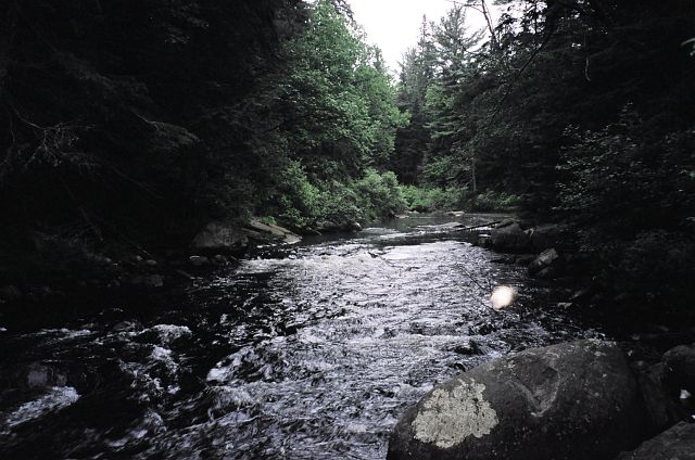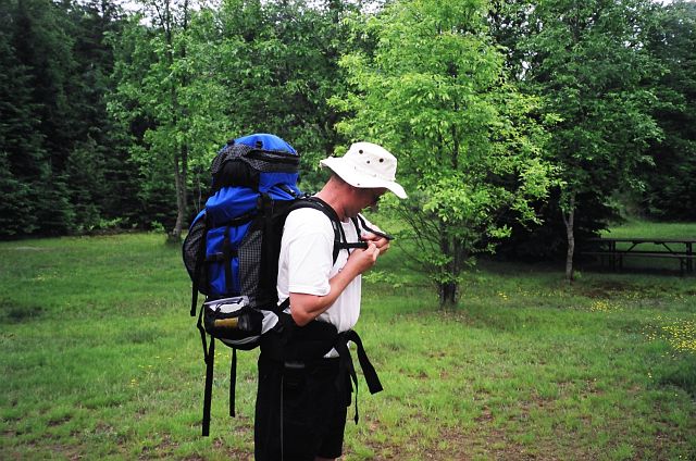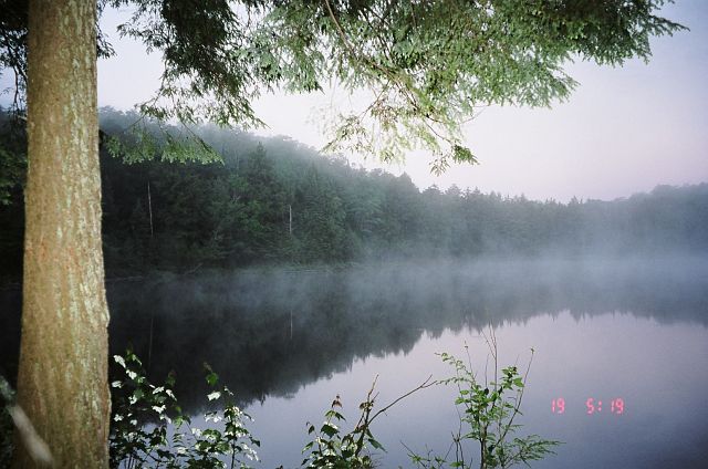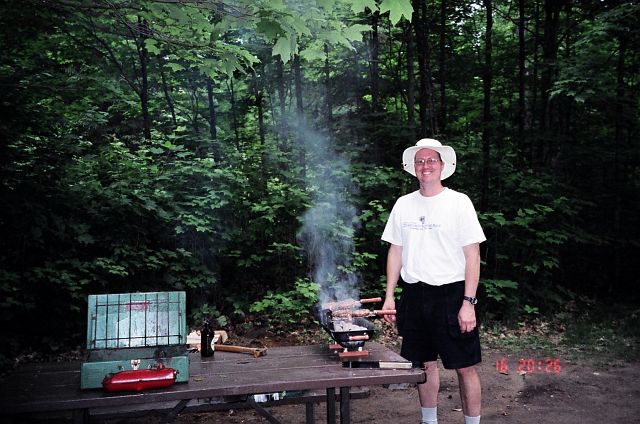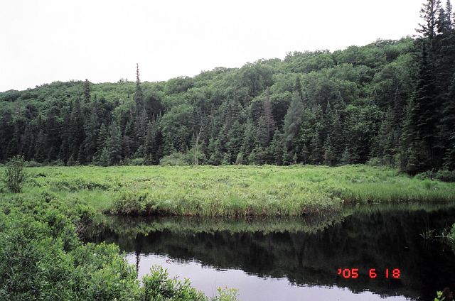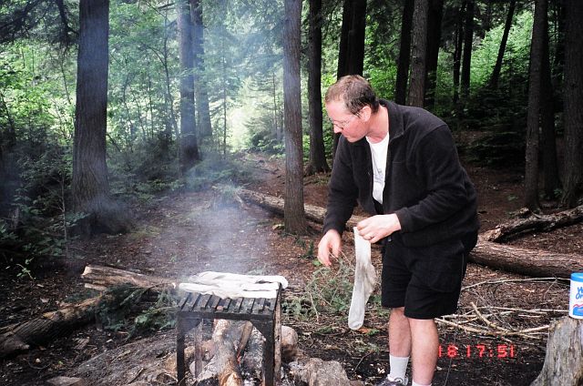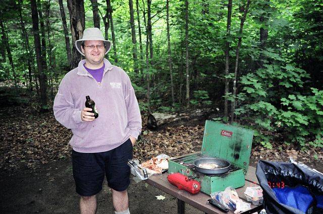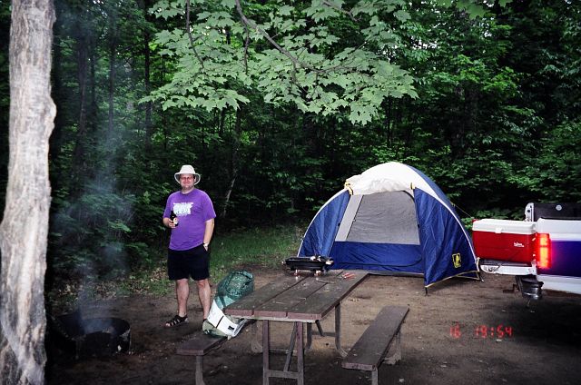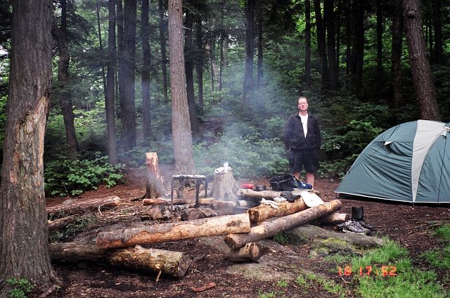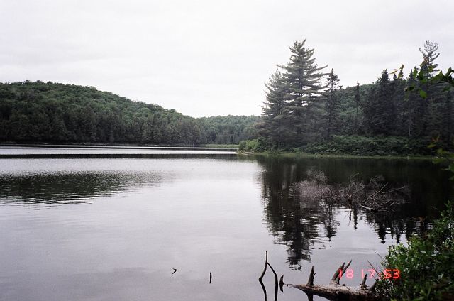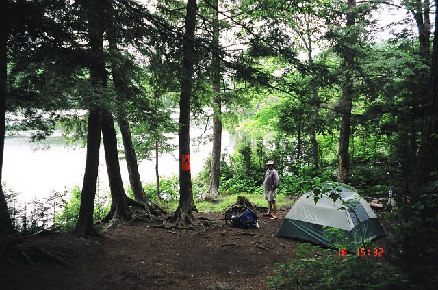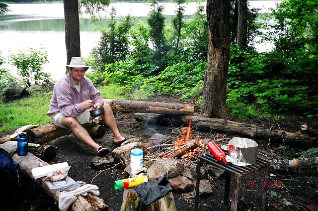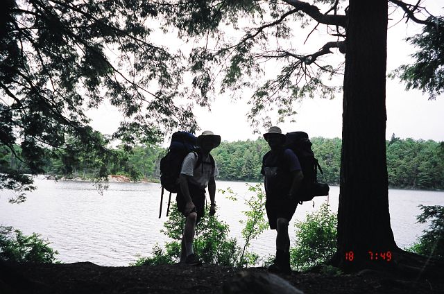 Sunrise on Maggie Lake. It was some of the only sun we had. It rained a good part of the night and into the morning, including a couple of rainy hours in the early AM while we huddled in the tent listening to the CBC Toronto morning man rant on about what a lovely bright sunny day it was.